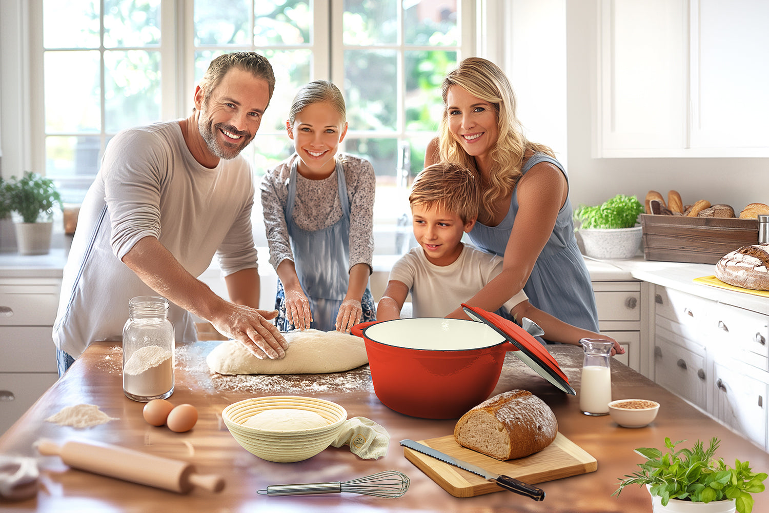 Unsere Produkte werden mit größter Sorgfalt und hochwertigen Materialien gefertigt. Vom robusten Gusseisen bis hin zu feinen Emaille-Oberflächen – jedes Detail wird präzise verarbeitet, um dir ein unvergleichliches Backerlebnis zu bieten. Unsere Fertigung vereint Tradition mit modernster Technik, um langlebige Qualität und hervorragende Backergebnisse zu garantieren. Erlebe, wie Leidenschaft und Handwerkskunst in jedem Produkt zum Ausdruck kommen.